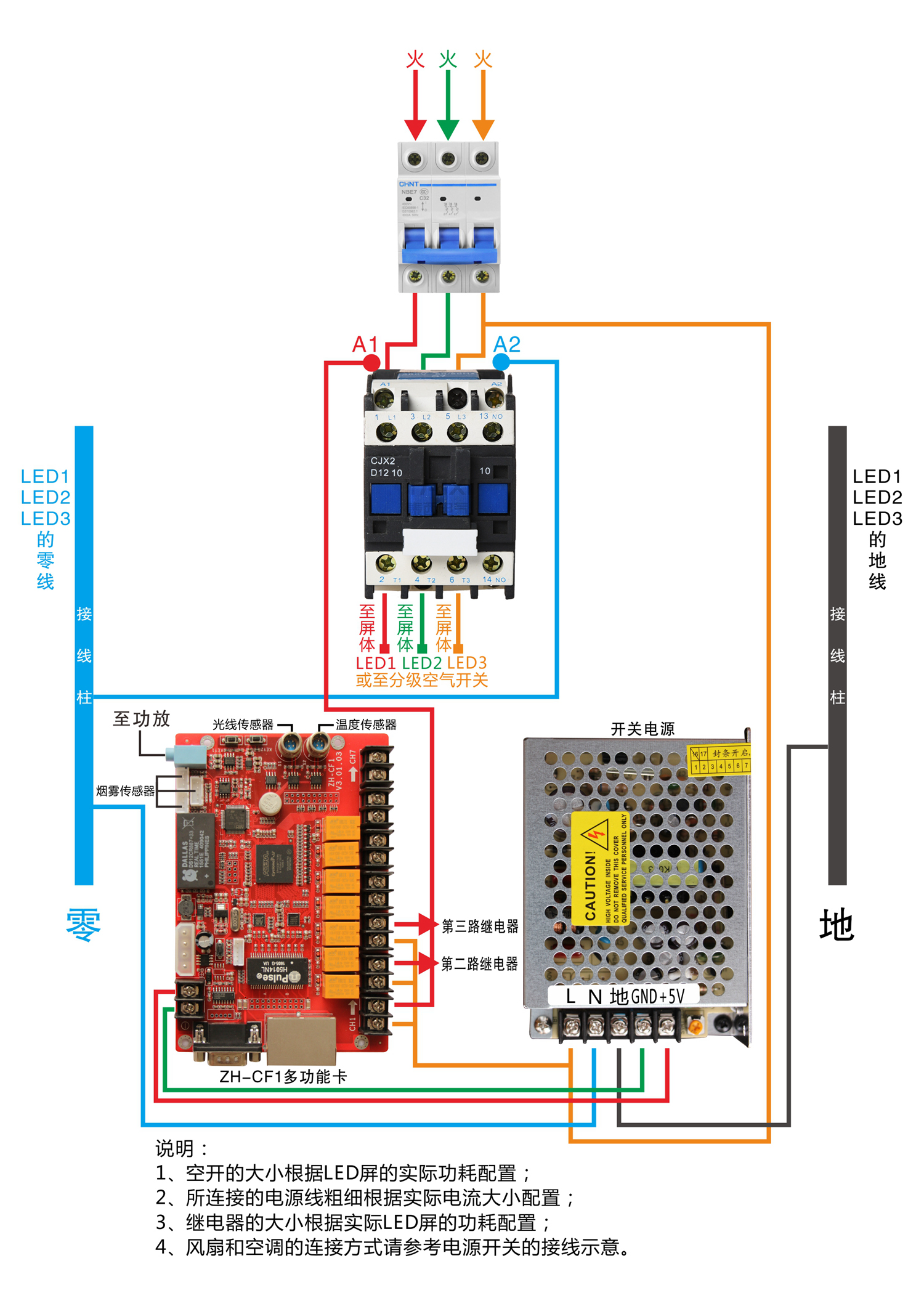 管理LED屏中的電源設備(顯示屏電源、空調電源、風(fēng)扇電源、報警設備)。